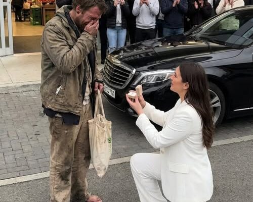 On most days, no one noticed him. Just another invisible figure swallowed by the city’s indifference. His coat was torn at the sleeves, his shoes barely holding together, his beard wild, his hair unkempt. His eyes carried the dull distance of someone who had stopped expecting the world to look back. When Isabella stopped in front of him, it took several seconds before he even raised his head—like his mind couldn’t accept that someone was truly standing there, speaking to him.