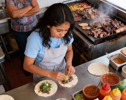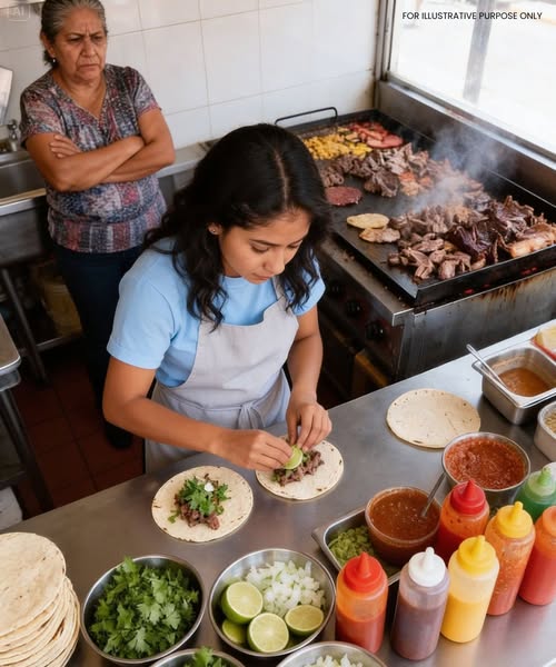 A month later, the place glowed. The orange walls warmed the entire street. A secondhand counter, polished until it shined. Tables neatly arranged, red-and-white plastic tablecloths. Music spilling onto the sidewalk. I sold tacos, sodas, flavored waters—and laughed with customers all day.