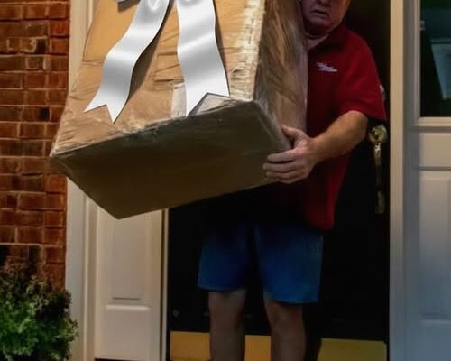 The driver struggled with a massive box. “Careful,” he said. “This thing weighs a ton.”