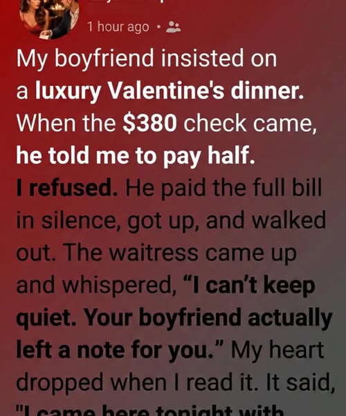 A Valentine’s Dinner Meant to Be Romantic — Until the Night Took a Turn No One Expected.