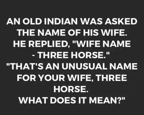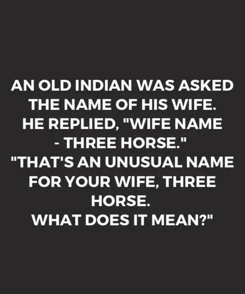 “Three Horse?” he repeated. “That’s quite an unusual name for a wife. What does it mean?”