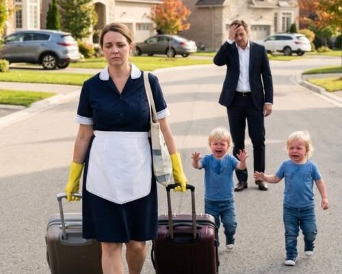 Clara froze. The air caught in her throat. She knew those voices better than her own breath. They were the voices that woke her every morning asking for chocolate milk, the voices that whispered “I’m scared” when there was a storm. Instinct was stronger than the dismissal order. She turned slowly, and what she saw made the world stop.