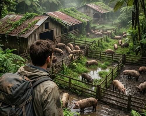 The 30 piglets he left behind five years earlier had somehow become an entire herd.