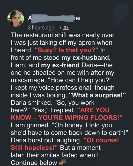 I never thought I’d see my ex-husband Liam and my former best friend Daria again, but two years after our divorce, they showed up — and tried to mock me. Little did they know, things had changed. Liam and I were married for three years, living a simple, steady life that felt like a dream after my chaotic childhood.