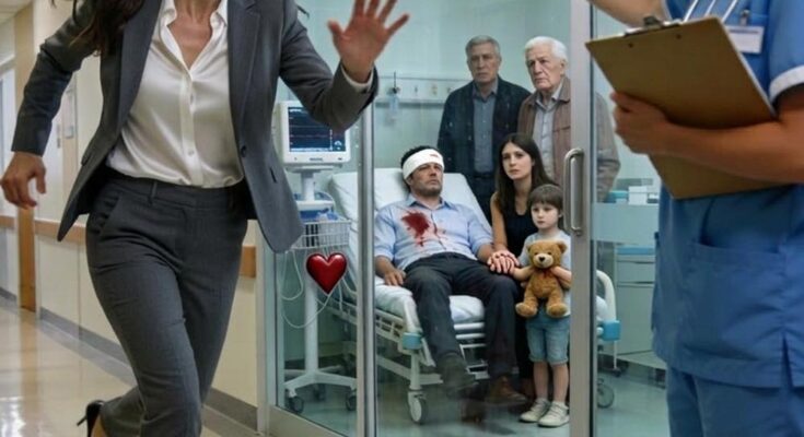 Beside him sat a woman, mid-twenties, cream cashmere sweater, tear-streaked but composed. Her left arm curled protectively around a boy of perhaps three who clutched a small plastic robot and stared at the man in the bed, whispering “Daddy” over and over.