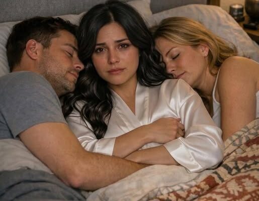 She does not grip tightly. She simply rests her hand over yours, warm and steady beneath the blanket, until your breathing slows enough not to betray your panic. Beside her, your husband Esteban remains asleep, one arm thrown across his pillow, his chest rising and falling with the maddening calm of a man who has heard nothing at all.