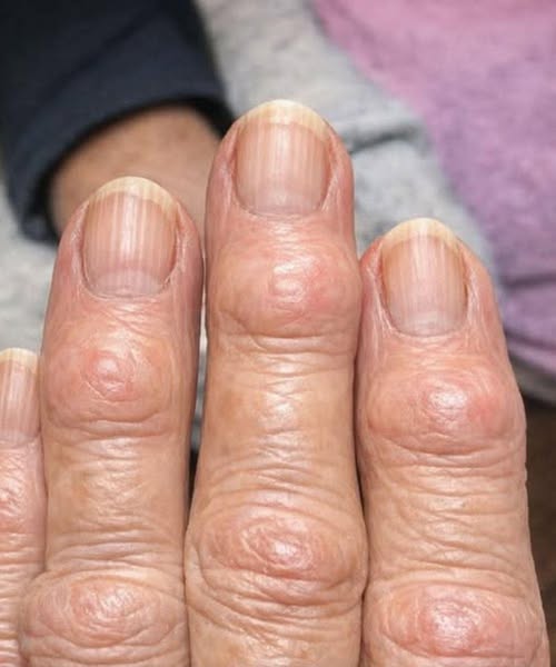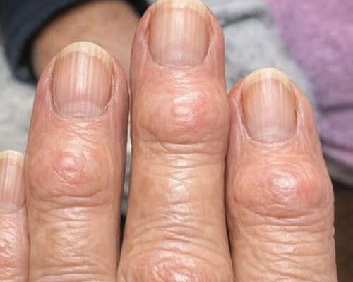 My grandma has these hard bumps forming on her finger joints near the nails. Why is this spreading?