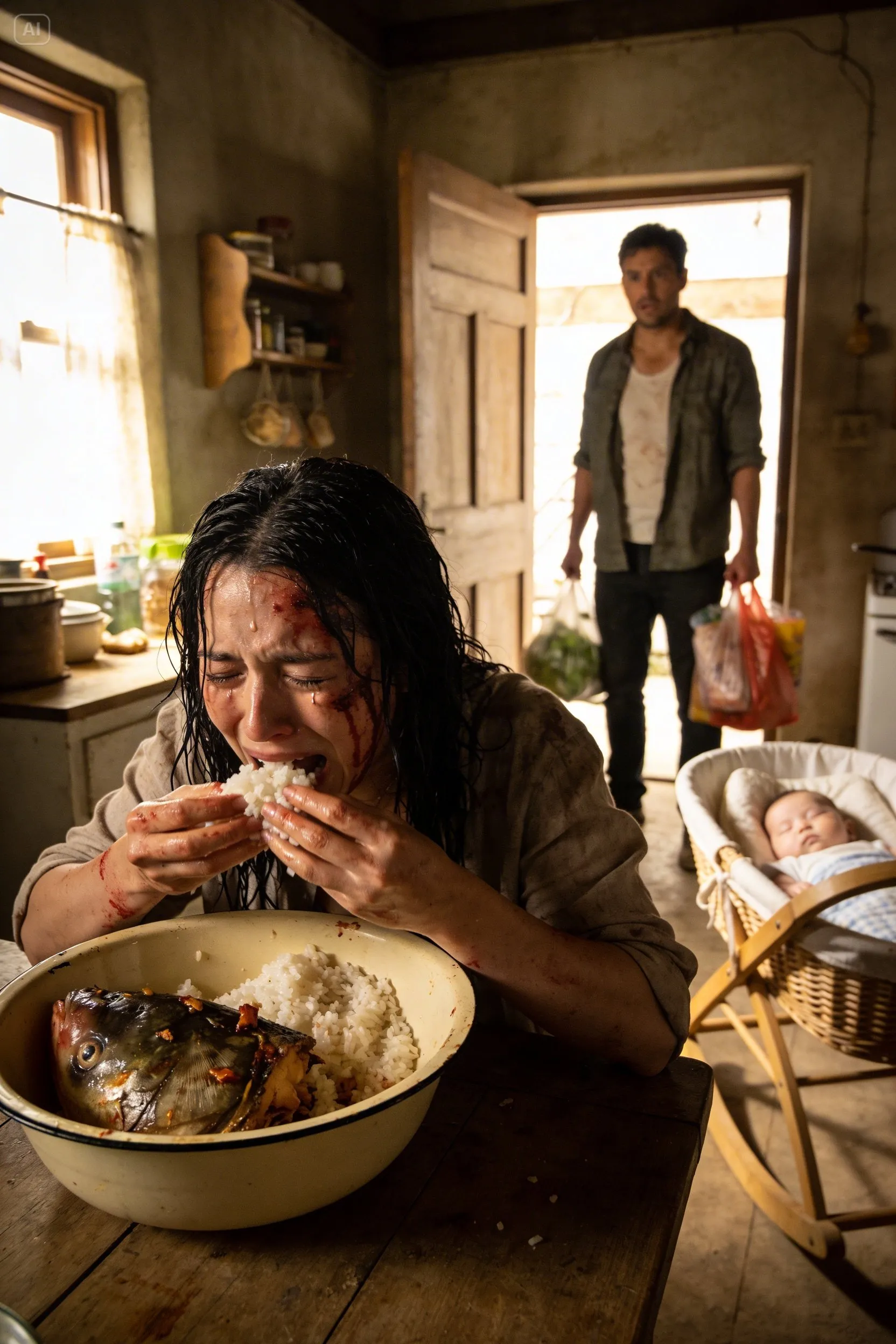 She began to cry, silently, with tears falling directly onto the spoiled rice, mingling with something deeper.