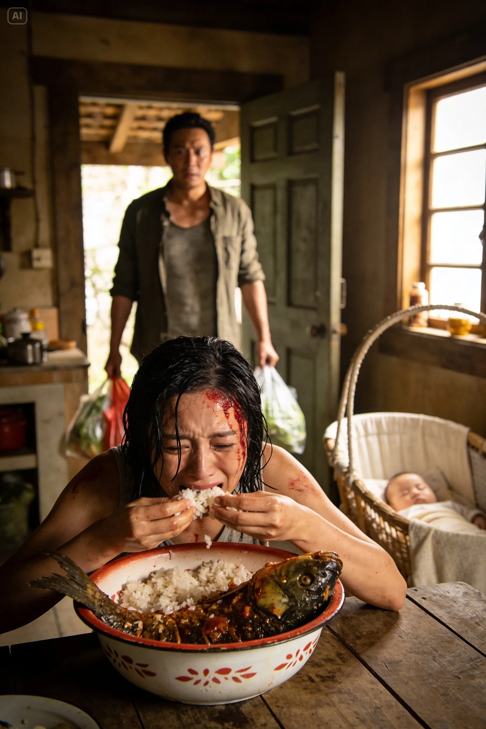 “Do you think this is food for someone who just gave birth?” My voice trembled, but not from weakness.