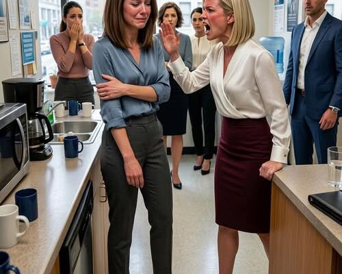 Emily’s head turned with the impact, her cheek burning. Around them, employees froze in shock. Slowly, she faced Vanessa again, a faint red mark rising on her skin, and asked in a voice so calm it unsettled everyone, “Your husband?”