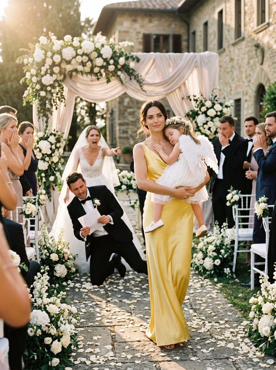 Not the flower basket. Not the thing she had trained for. But she walked like it was state business. Chin up. Tiny hands locked around the stem. Every step careful. Every step earned.