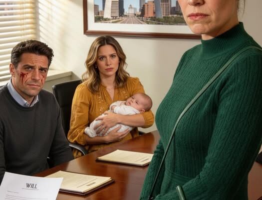 After my mother-in-law died, I went to the reading of her will—only to walk in and see my husband already seated beside his mistress, a newborn cradled in her arms. Neither of them looked ashamed. If anything, they seemed prepared—like they were expecting me to fall apart. But the moment the attorney broke the seal and began reading my mother-in-law’s final message, the air shifted. The room fell into stunned silence. And the color slowly drained from my husband’s face.