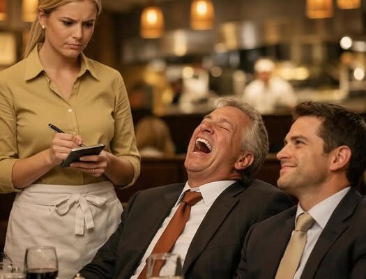At table twelve, a man in a charcoal tailored suit drummed his fingers against the white linen. A thick gold watch caught the chandelier light on his wrist. Across from him sat two colleagues who laughed louder than necessary at his remarks.